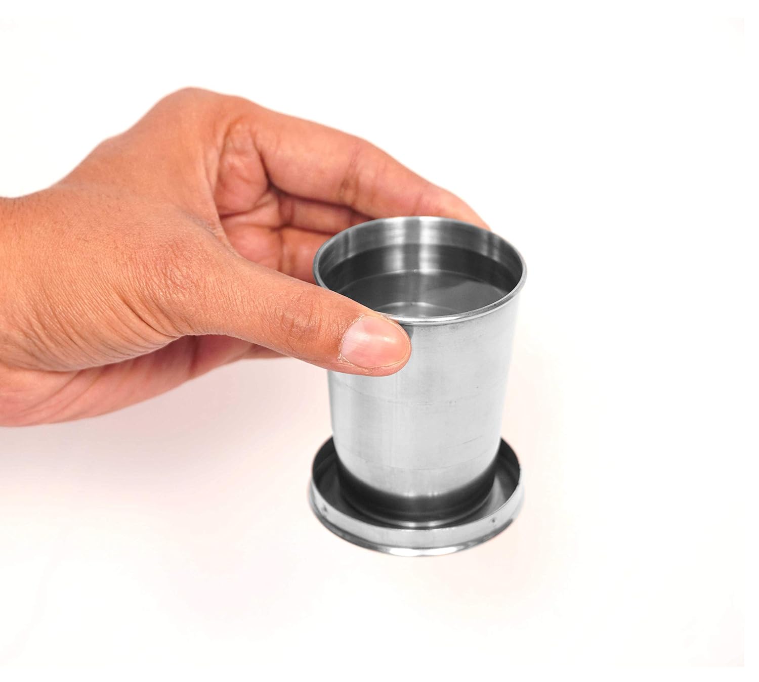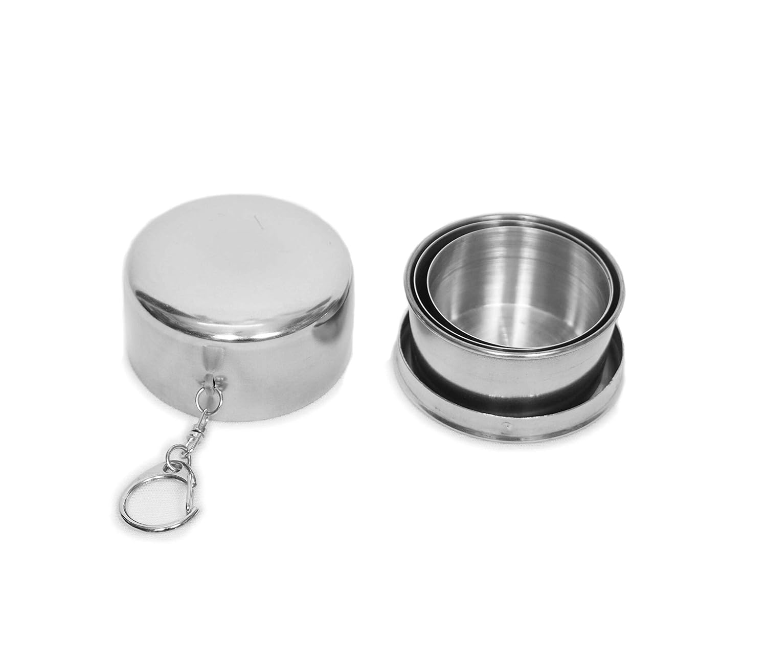 The Zilotyshopping 140 ml Stainless Steel Folding Glass is designed for convenient drinking anywhere, offering a collapsible structure that easily expands when needed and folds back for compact storage.