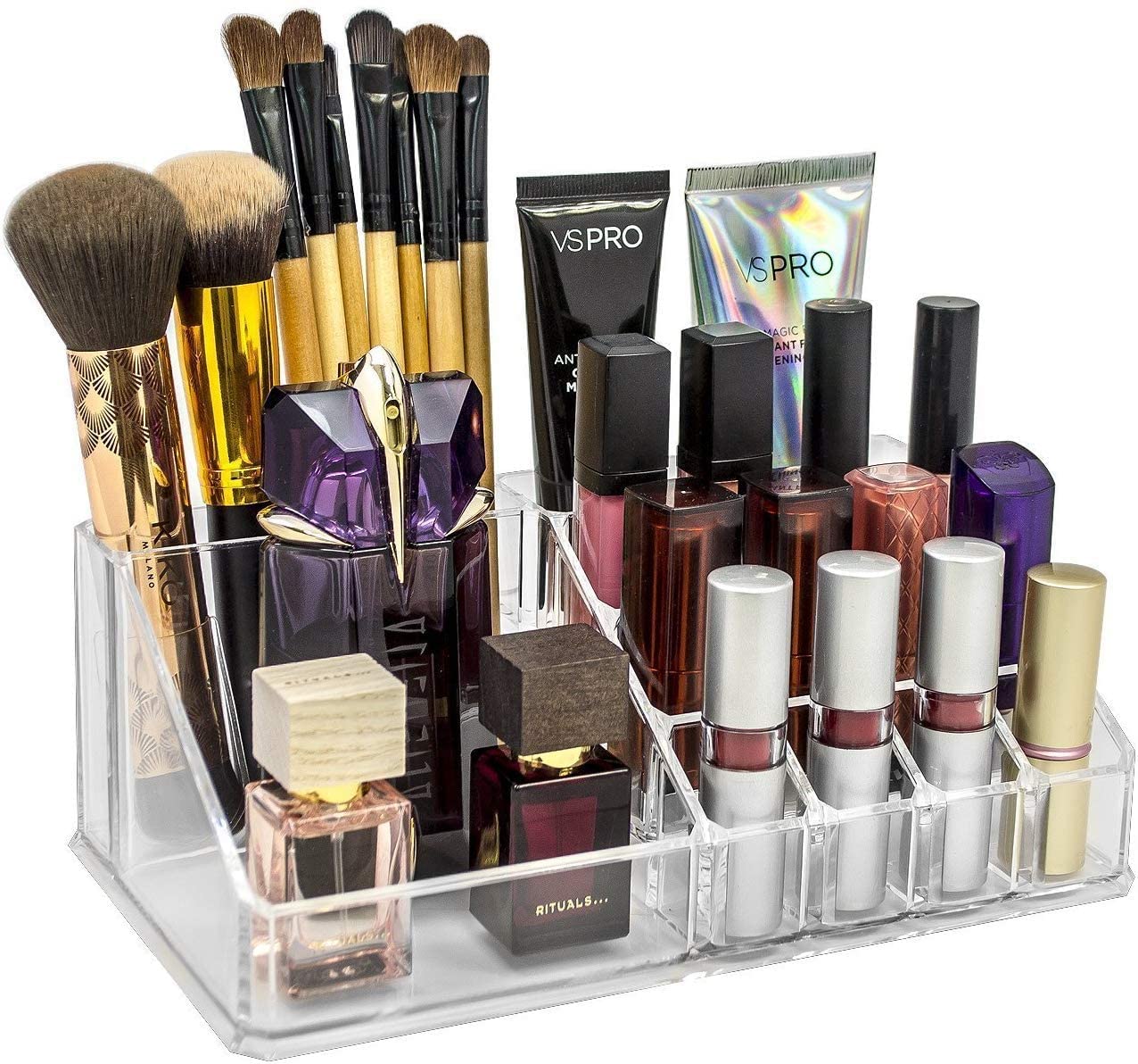 Crafted from high-quality clear acrylic, this organizer is durable, lightweight, and easy to clean. The sturdy design ensures stability on dressing tables, vanities, or shelves, while the smooth edges provide safe handling. Its compact footprint saves space while maximizing storage capacity, making it ideal for both home and professional makeup setups.