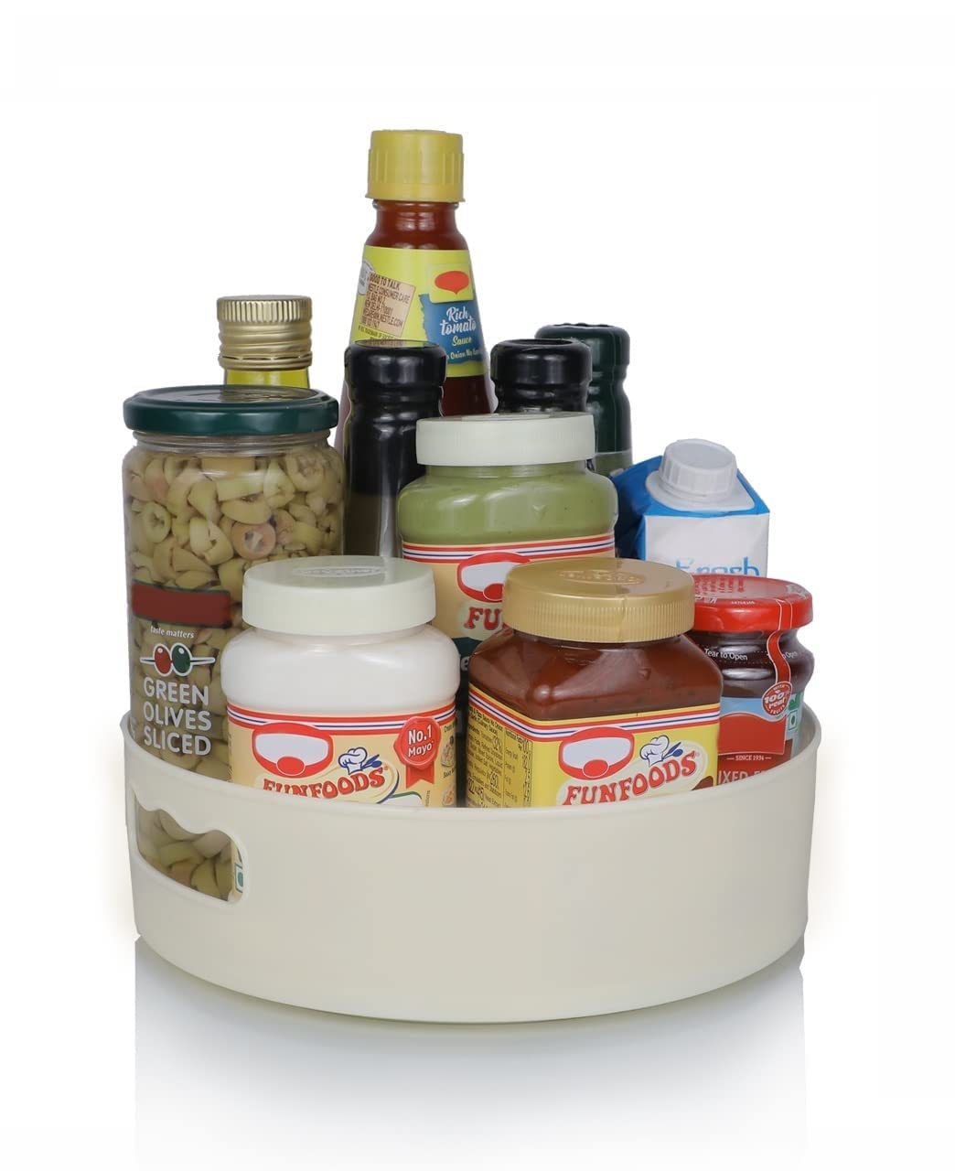 Built from durable, high-quality material, it features a stable anti-slip base that prevents sliding during rotation. Its compact yet spacious design fits perfectly inside cabinets, refrigerators, countertops, or shelves, making it a practical storage solution for every room.