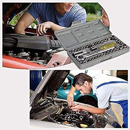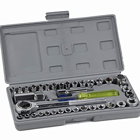 The Zilotyshopping 40-Piece Socket Tool Kit is a versatile and reliable hand tool set designed for both automotive maintenance and general-purpose home repairs. This all-in-one socket wrench set includes a robust 3/8″ reversible ratchet handle, a comprehensive range of metric and SAE sockets, and essential accessories like an extension bar, adapters, and spark plug socket — all organized in a durable blow-molded case for easy storage and transport.