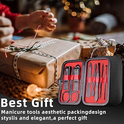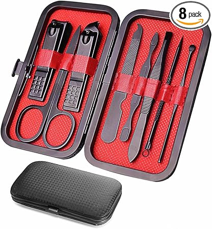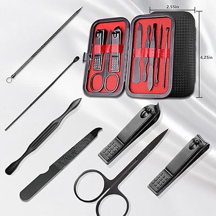 The Zilotyshopping Black 8 Pcs Manicure Nail Tools Set is designed to provide complete nail care at home, helping you trim, shape, and groom nails neatly while maintaining a clean and well maintained appearance.