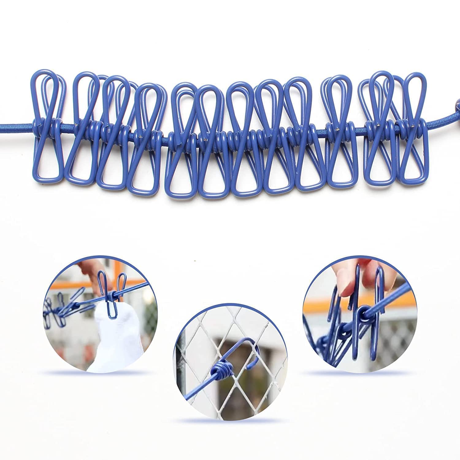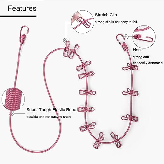 The Zilotyshopping Cloth Hanger Rope Clip is designed to make drying clothes easy and organized, featuring 12 attached clips that securely hold garments in place while drying indoors or outdoors.
