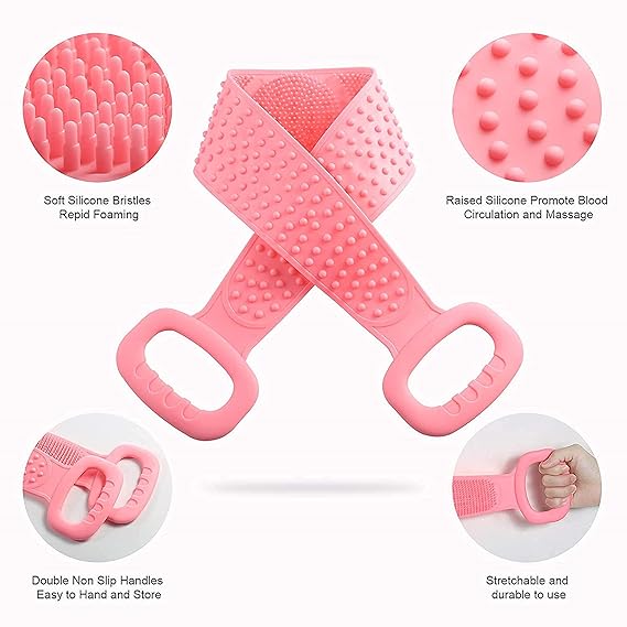 Zilotyshopping Silicone Back Scrubber | Long Handle Body Cleaning Brush | Soft & Flexible Bath Scrubber for Shower & Spa Use