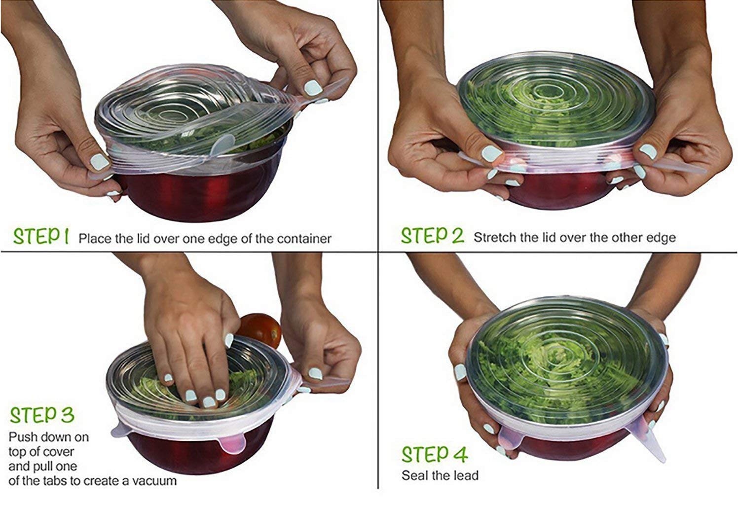 Made from flexible, durable silicone, these lids are easy to use, washable, and reusable—making them an eco-friendly alternative to plastic wrap or foil. Ideal for everyday kitchen use, storage, and leftovers.
