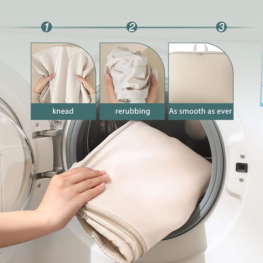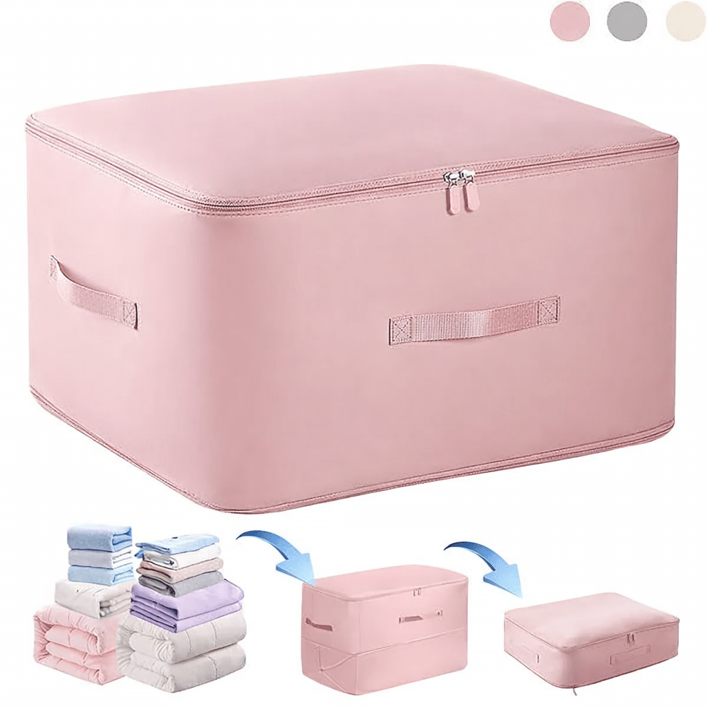 The bag is foldable and reusable, making it easy to store when not in use. Its durable material helps protect contents from dust and moisture, while the spacious design makes it ideal for cupboards, wardrobes, beds, and travel storage.